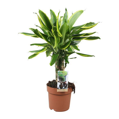Deze Dracaena is de herkennen aan de donkergroene bladeren met gele randjes. De Dracaena is een sterke plant en heeft weinig water nodig. Een makkelijke huisgenoot dus! Volgens de NASA Clean Air studie is de drakenboom een uitstekende luchtzuiveraar. De plant neemt schadelijke stoffen uit de lucht op en bouwt deze om tot zuurstof. De plant zorgt dus ook nog eens voor jou!