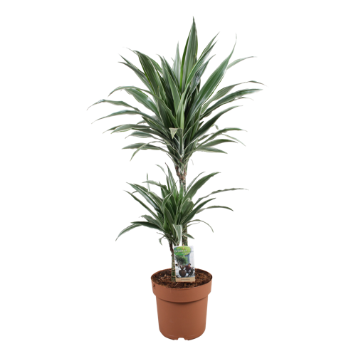 Deze drakenboom groeit als de meeste soorten op een stam, maar heeft bijzonder mooi witgroen blad. Deze plant wordt vaak uitgekozen als kamerplant omdat ze sierlijk op een stam groeit, en zo vrij weinig ruimte in beslag neemt, maar toch tot een groen interieur bijdraagt.