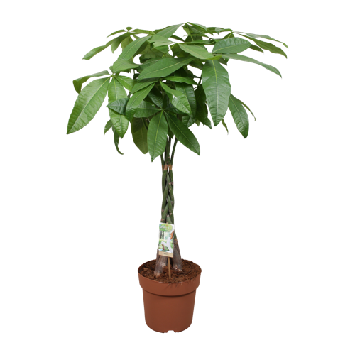 De Pachira kent men onder de naam Watercacao. De stam van de plant is mooi gevlochten en eindigt in een groene bladkroon. In de stam kan de plant vocht opslaan, best slim! Zo doorstaat de plant ook korte tijden waarin ze niet regelmatig met water verzorgd wordt. Mocht de kop van de plant te groot worden, zo kan de bol iets bijgeknipt worden.